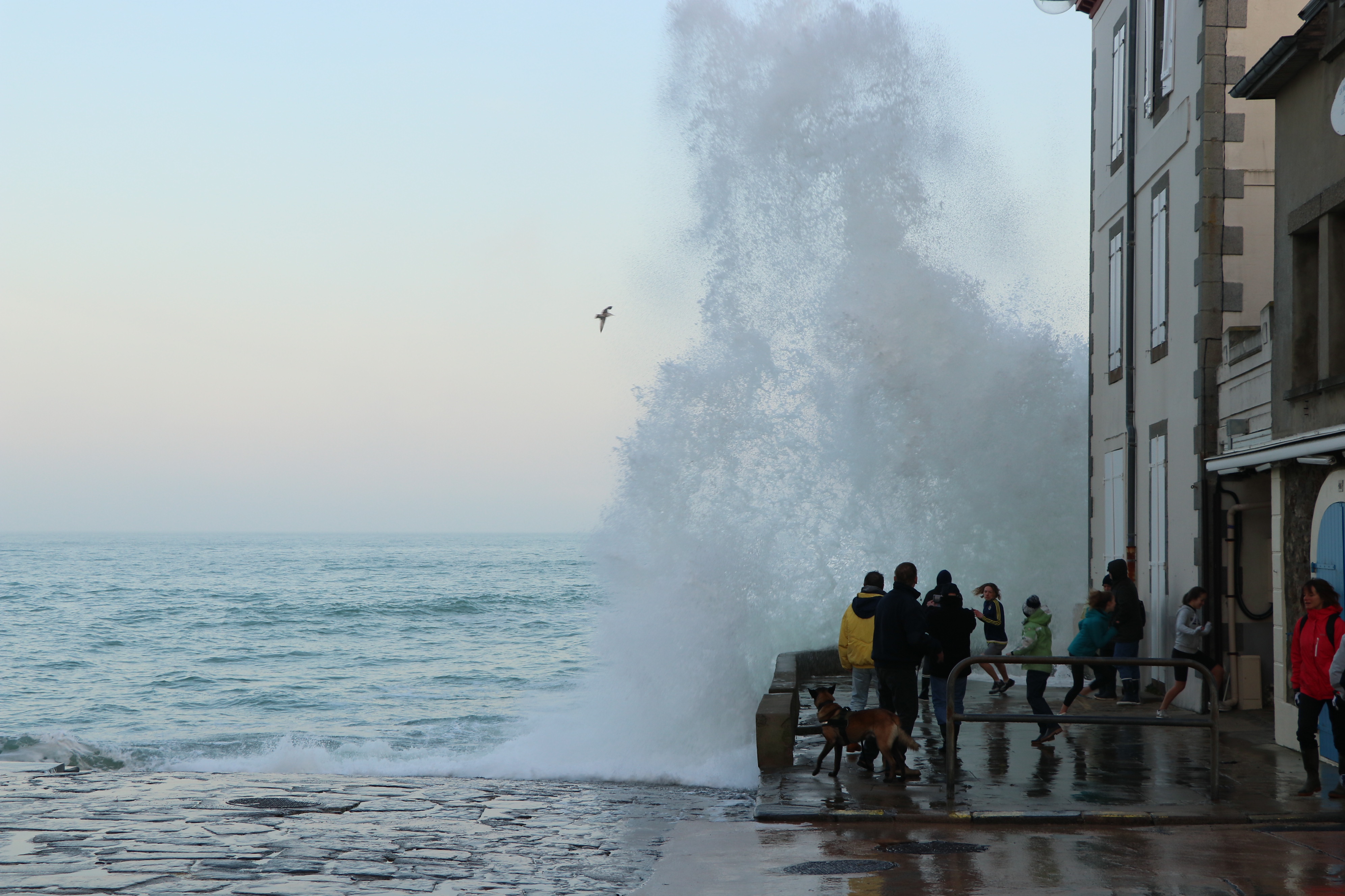 C’est un des endroits favoris des habitants pour y admirer les grandes marées. Il y a d’ailleurs toujours un peu de public, dès que les coefficients de marée dépassent les 100.
