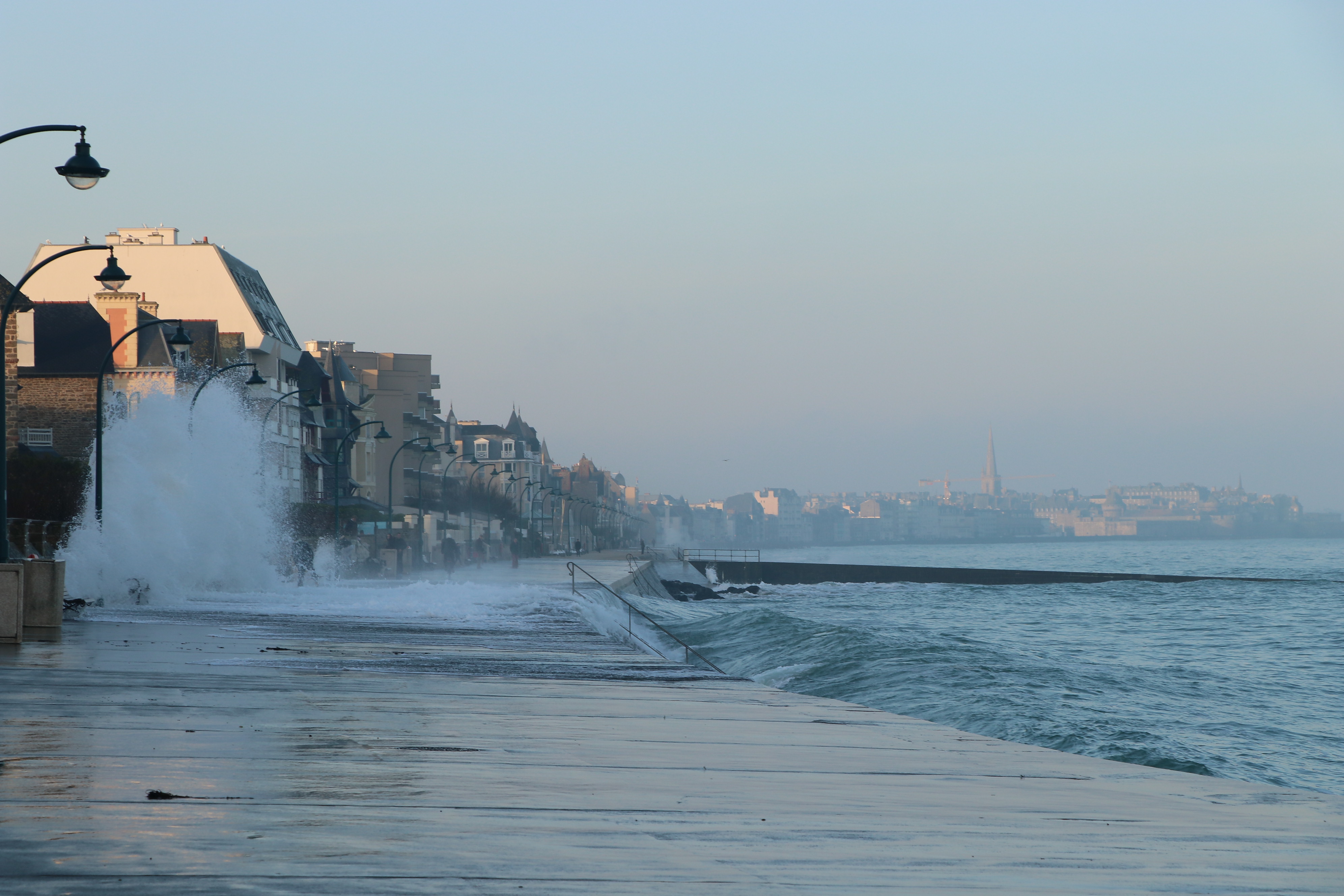 Au moment des grandes marées, les vagues viennent se fracasser de façon spectaculaire sur la promenade.